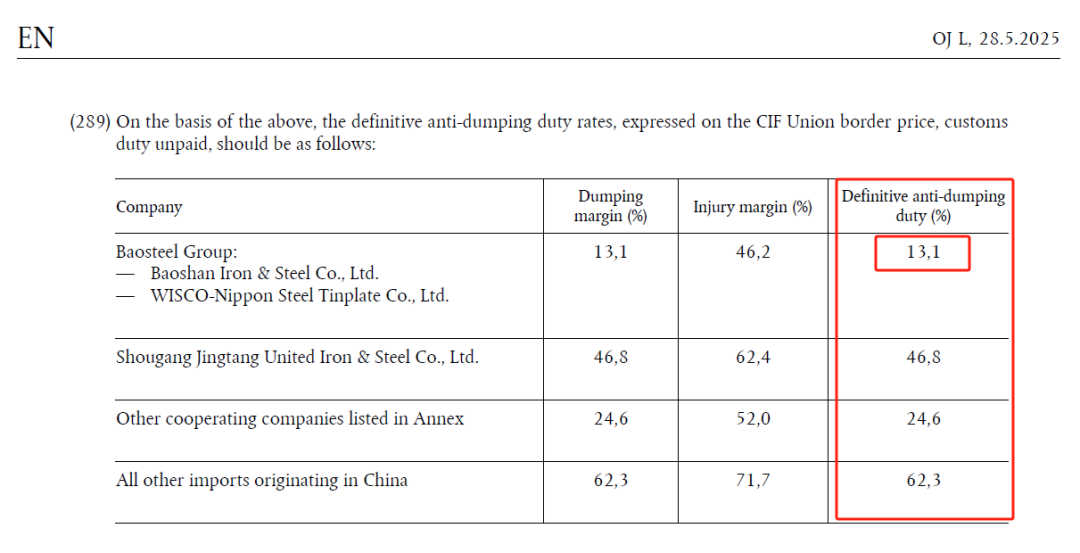 2025年5月28日,欧盟委员会发布终裁公告,正式对原产于中国的镀锡板产品征收反倾销税。在此次调查中,大成高级合伙人胡富茂律师团队联合Dentons布鲁塞尔办公室合伙人唐晓奕律师团队代理中国出口欧盟最大生产商宝山钢铁股份有限公司(以下简称“宝钢股份”)及武钢日铁(武汉)镀锡板有限公司(以下简称“武钢日铁”),凭借专业的法律服务和高效的应诉策略安全炒股配资网,成功获得历史级别的最低税率,远低于其他中国企业的税率。这一成果不仅彰显了中国企业在国际贸易争端中的应对能力,也为中国钢铁行业应对欧盟贸易壁垒树立了良好先例。在当前的国际贸易冲突加剧的大背景下,本案的胜诉更显弥足珍贵。